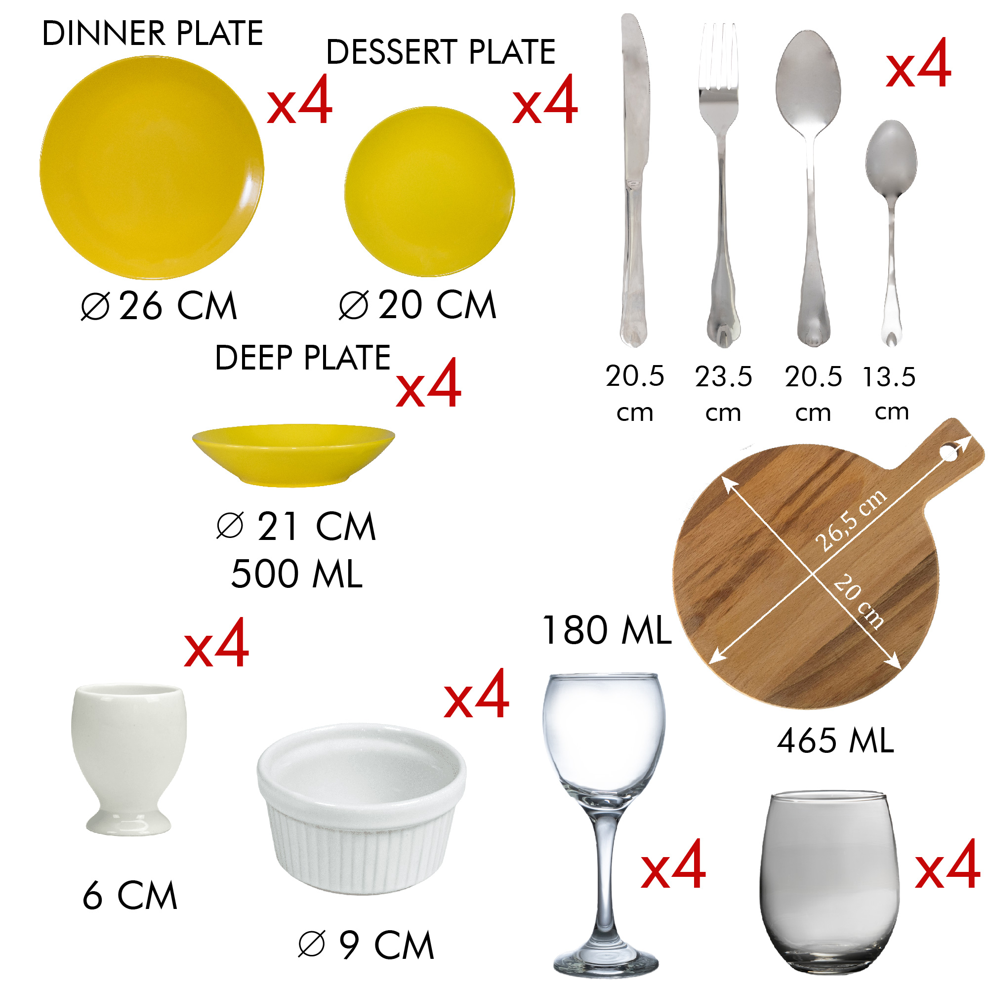 Adăugați Setul 4 Persoane 45 Piese de Bucătărie Cesiro în Galben Rumen în coșul dvs. și pregătiți-vă să vă bucurați de momente de neuitat alături de cei dragi. Cu fiecare detaliu finisat impecabil și cu fiecare piesă atent selecționată, acest set vă va însoți în fiecare aventură culinară, aducând un strop de eleganță și stil în fiecare masă. Bucurați-vă de experiențe gastronomice unice și transformați fiecare masă într-un moment de bucurie și împlinire. 🌼