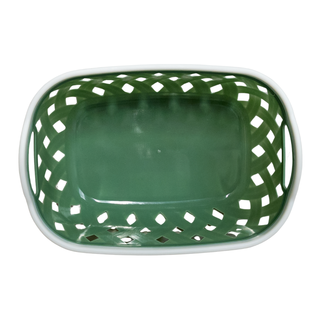 Cosulet de depozitare dreptunghiular verde cu margine alba si manere, din plastic, 10×22,5×15,5 cm