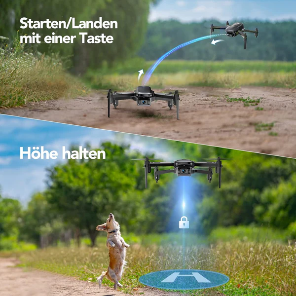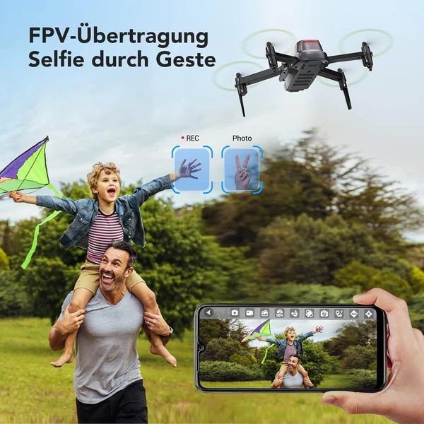 Calea unică de zbor: în aplicație puteți desena o linie de zbor, iar drona va zbura automat de-a lungul rutei furnizate de dvs. Folosind funcția video, drona înregistrează automat scena când zboară. Controlul prin gesturi facilitează, de asemenea, realizarea selfie-urilor. Începeți cu înregistrarea dvs. unică a filmului acum.