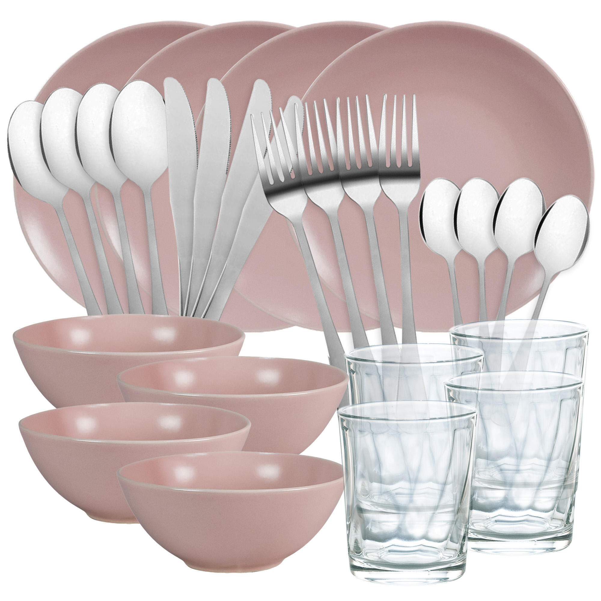 Eleganta si Practicitate: Setul de Masa 28 piese – Alegerea Perfecta, pentru 4 persoane, Roz Mat