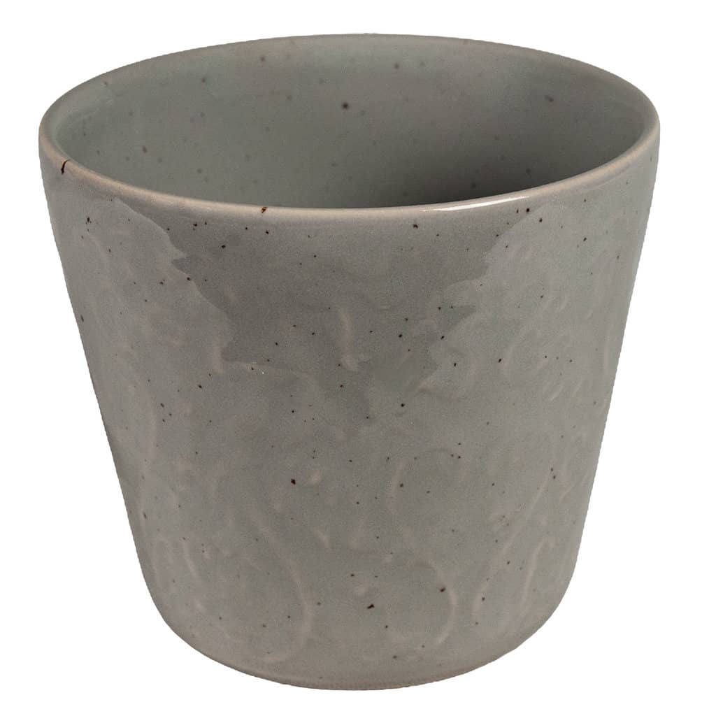 Ghiveci decorat in relief cu elemente aztece , Cesiro, 10 cm, Gri Argintiu Pigmentat