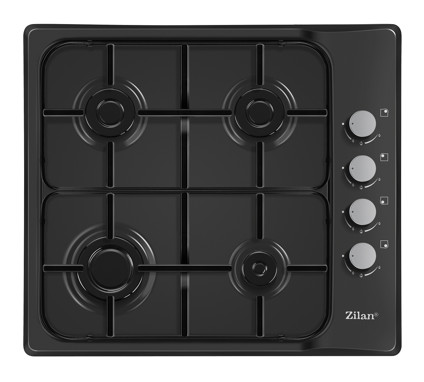Plita incorporabila Zilan ZLN-0041,Negru Gaz gpl sau natural, Aprindere electrica, 4 arzatoare, 60×50 cm