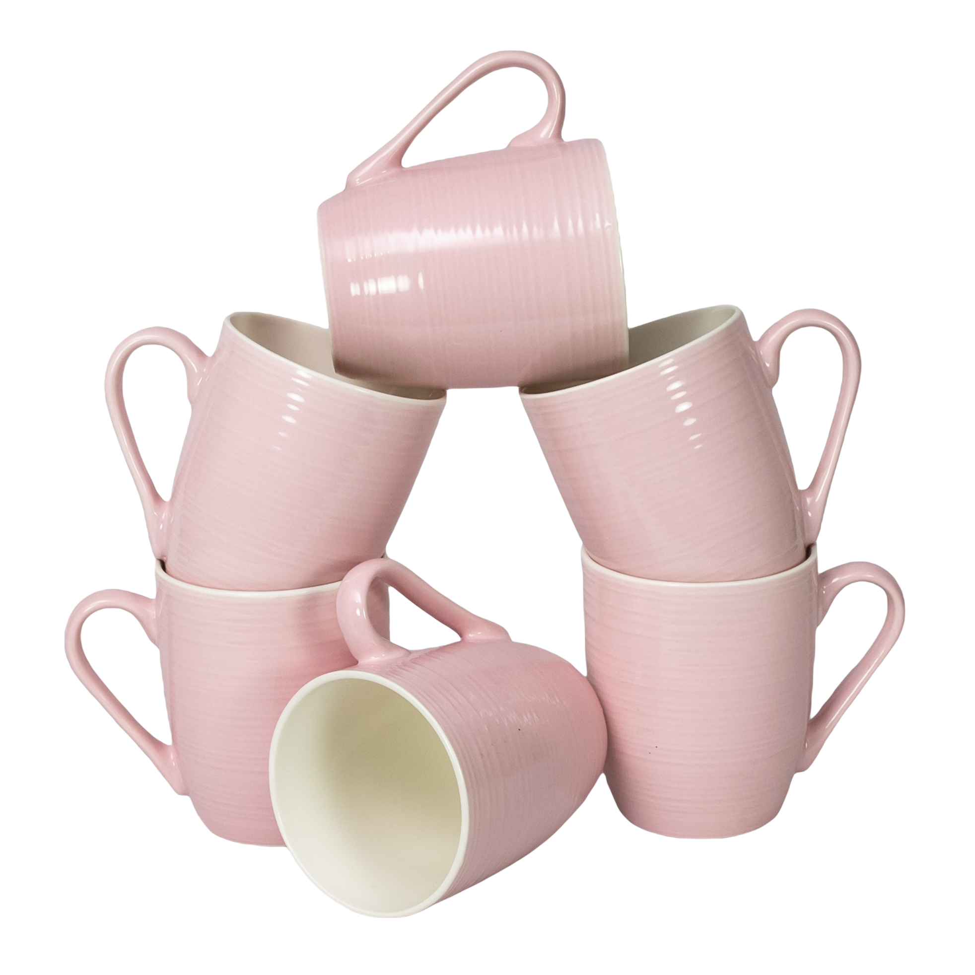 - Setul include 6 căni cu model linii roz de 390 ml fiecare.