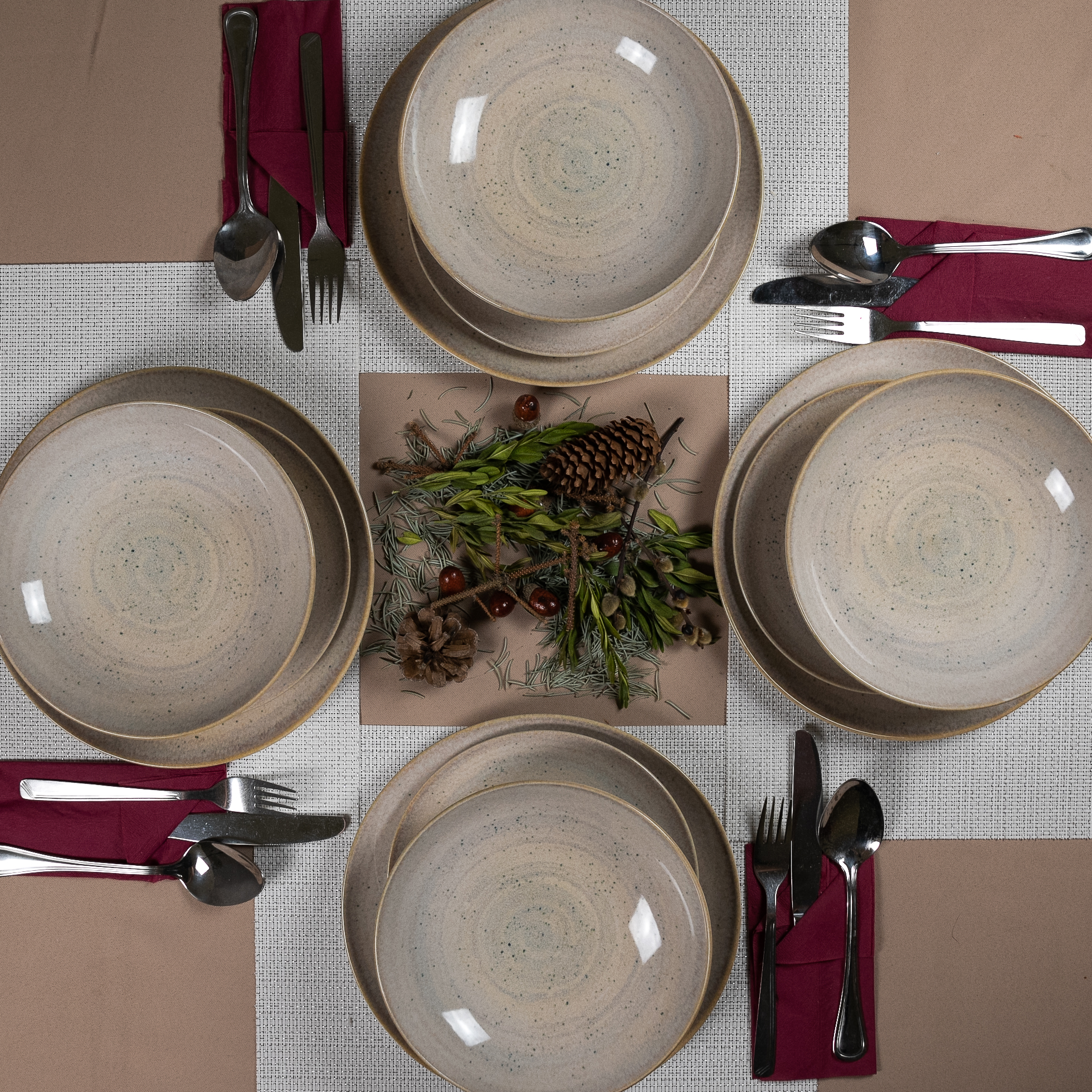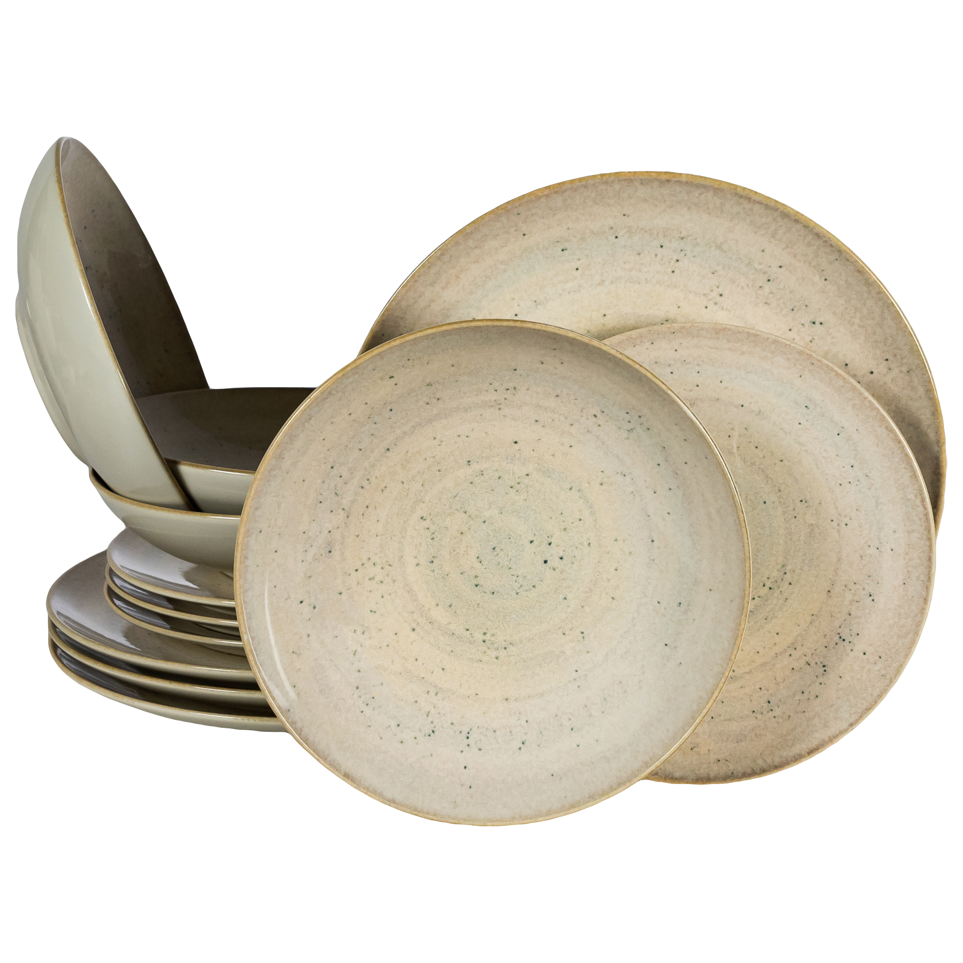 Set Complet Farfurii 12 Piese, Întinsă, Adâncă, Desert, Ceramică, Fabricat in Romania, Cesiro, Shell, Crem deschis