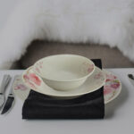 Acest Set Complet Serviciu De Masa 2 piese vine cu un total de 2 de piese, care include un pahar si o farfurie intinsa. Culoarea ivoire ofera o nota de eleganta si rafinament oricarei mese, in timp ce designul floral adauga un element subtil si fermecator al naturii. Una dintre caracteristicile remarcabile ale acestui Set Complet Serviciu De Masa 2 piese de cina este materialul sau: portelan. Portelanul este cunoscut pentru durabilitatea sa, ceea ce inseamna ca acest set de vesela este conceput sa reziste mult timp.