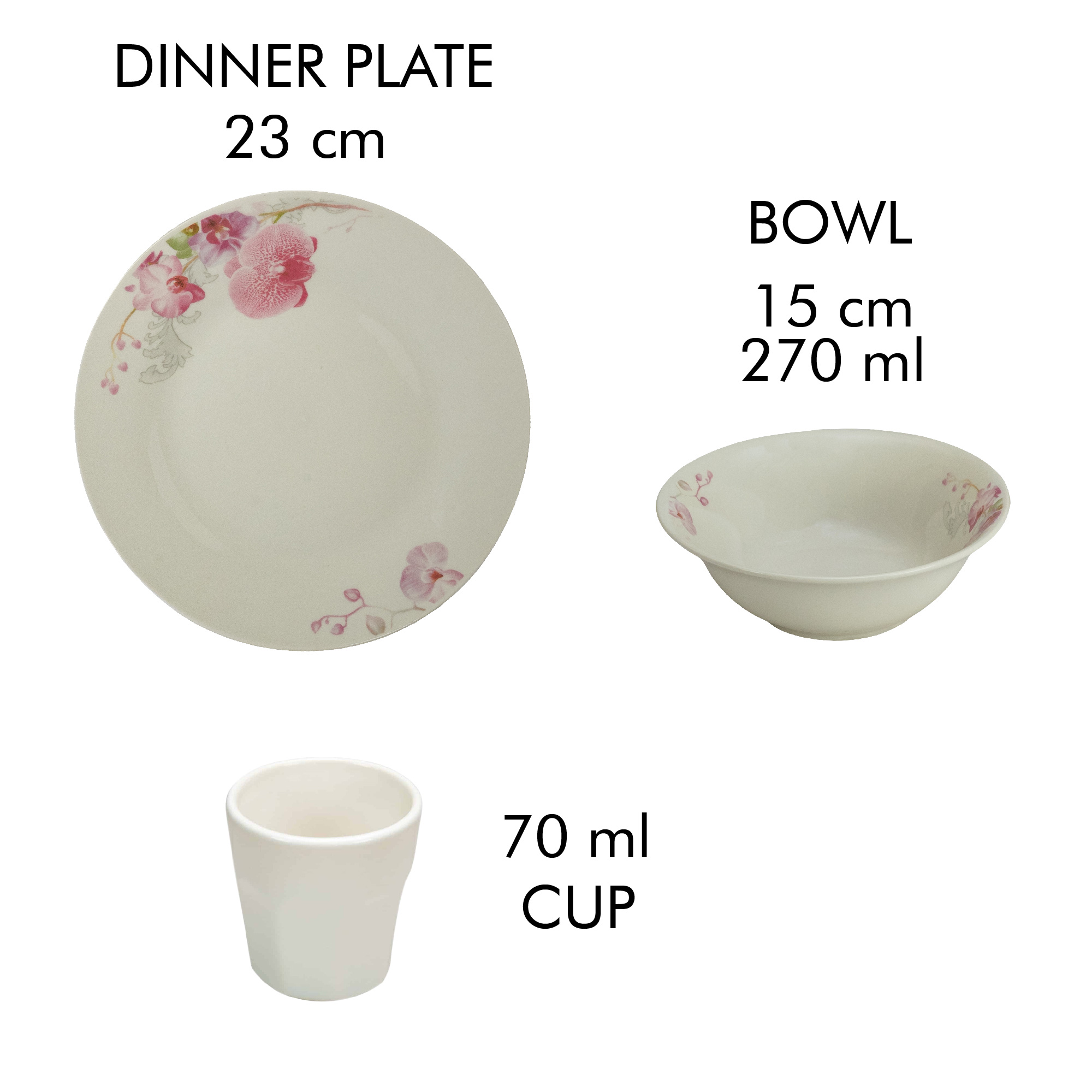 Acest Set Complet Serviciu De Masa 3 piese se distinge prin eleganța sa simplă și rafinată. Fiecare piesă este decorată cu un model delicat de orhidee pe un fundal de culoare ivoire. Nuanțele calde de ivoire adaugă un farmec subtil și o aură de rafinament fiecărei mese. Designul cu orhidee aduce o notă de frumusețe și natură în bucătăria dumneavoastră.