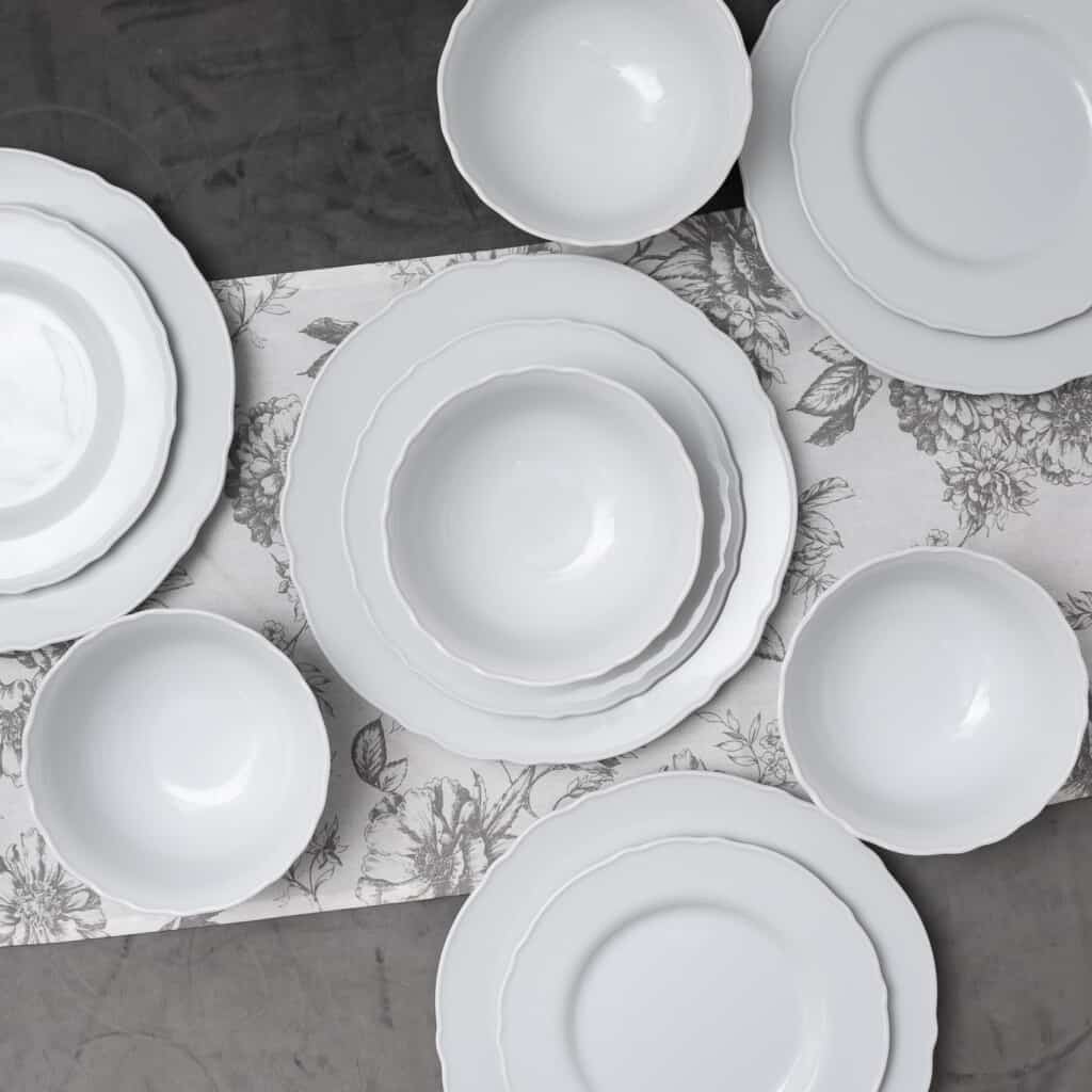 Unul dintre aspectele definitorii ale acestui set de masă este nuanța sa de alb lucios. Albul este o culoare clasică care simbolizează puritatea și eleganța. Luciul adaugă o notă de sofisticare și rafinament farfuriilor. Cu acest set, veți putea crea prezentări spectaculoase pentru fiecare fel de mâncare și veți aduce un strop de clasicism la fiecare masă.