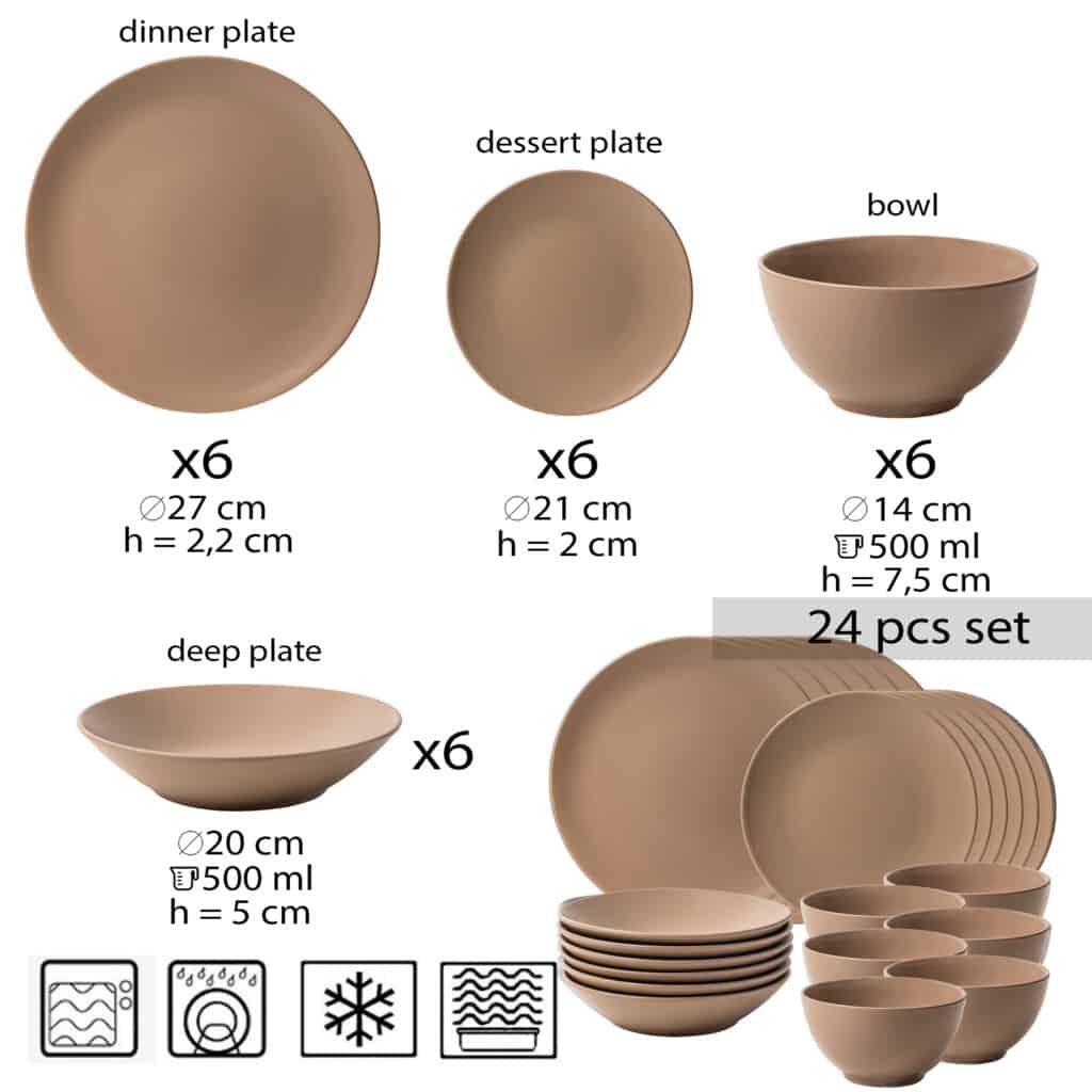 Set farfurii 24 piese, pentru 6 persoane, Latte, Cesiro, Crem Mat: Eleganță și Refined Simplitate