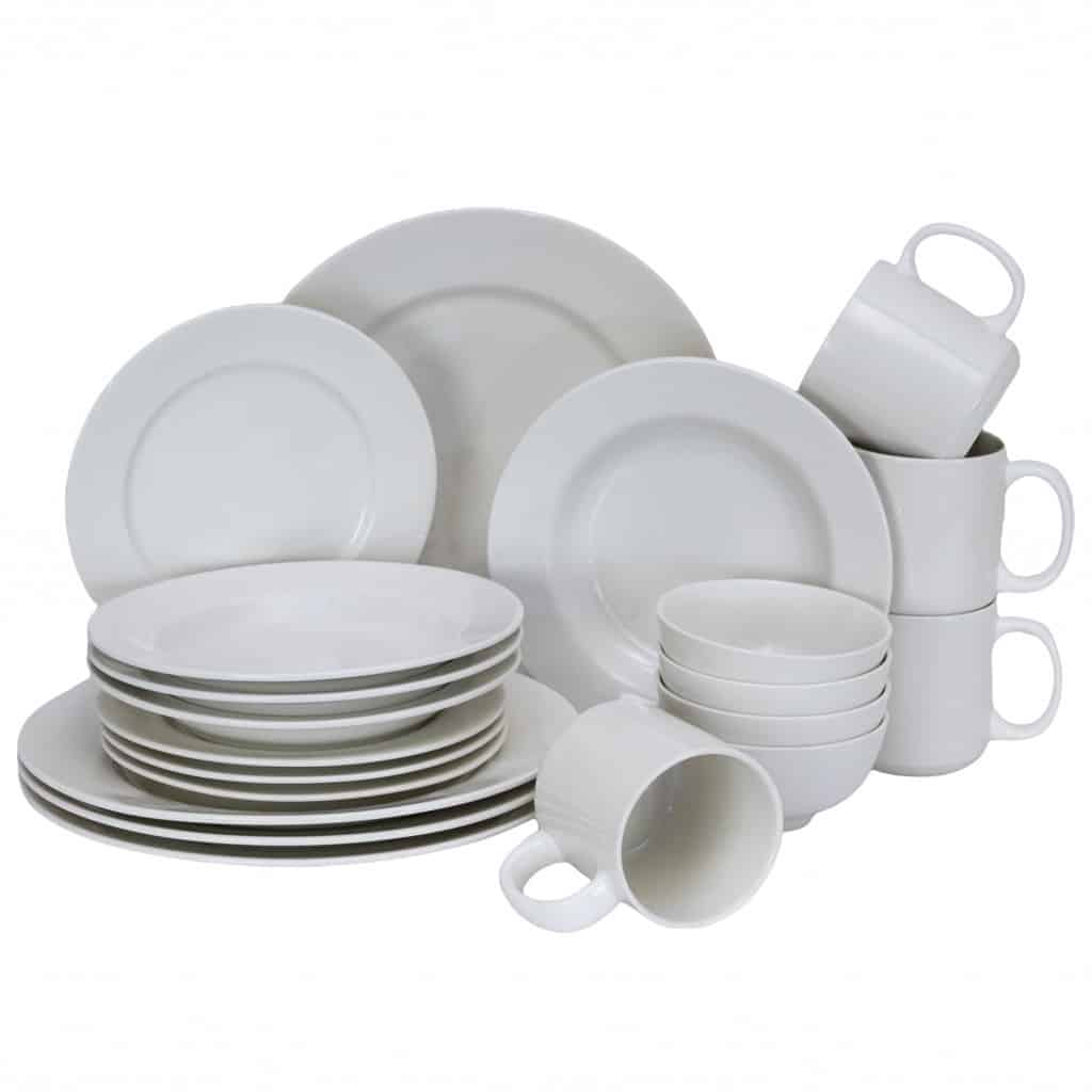 Setul contine:4 boluri:190 ml,4 farfurii intinse: 27 cm, 4 farfurii desert: 20 cm, 4 farfurii adanci 19 cm, 4 cani de 350 ml
