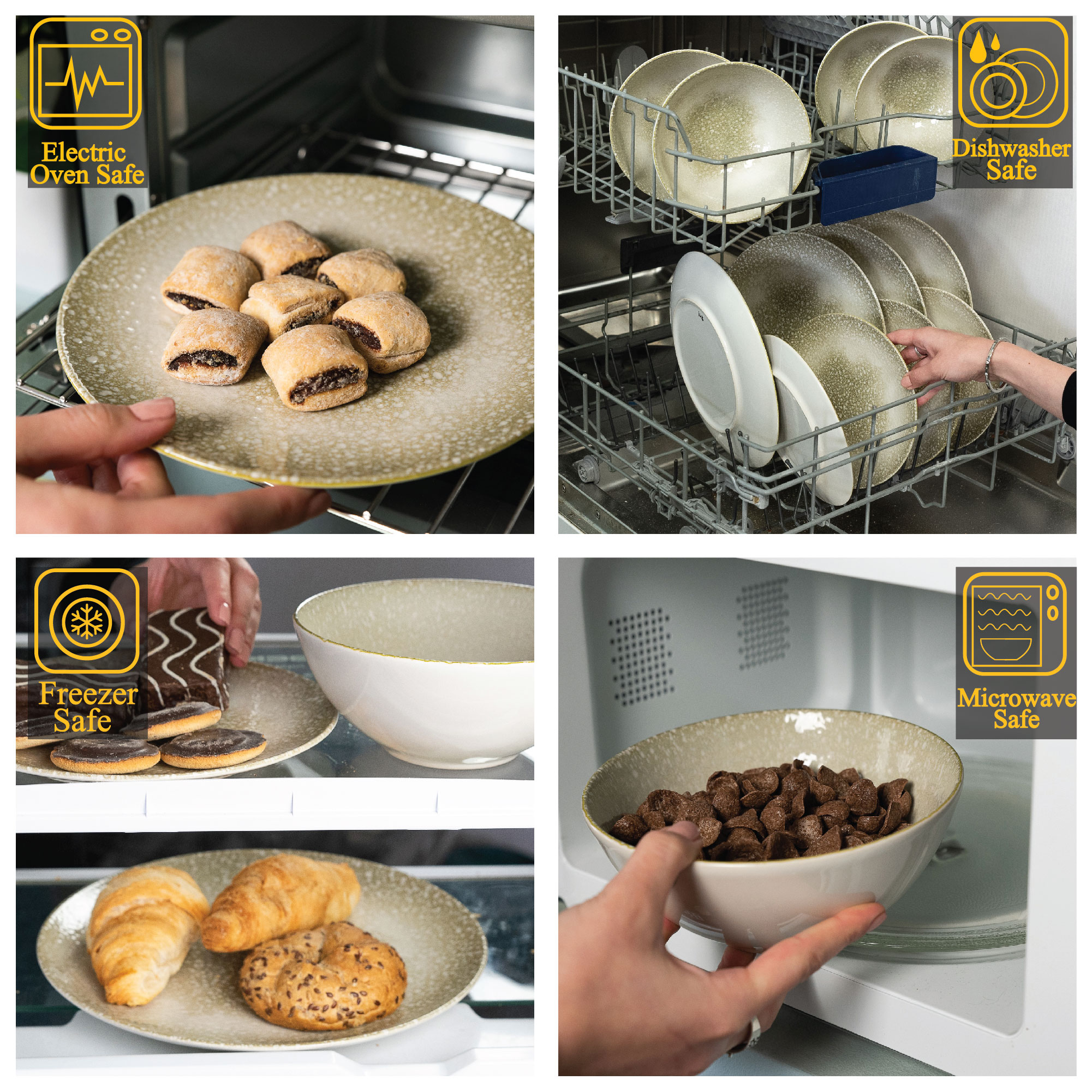 - 6 farfurii pentru cină: Ideale pentru servirea felurilor principale, aceste farfurii generoase sunt perfecte pentru a găzdui mâncăruri delicioase.