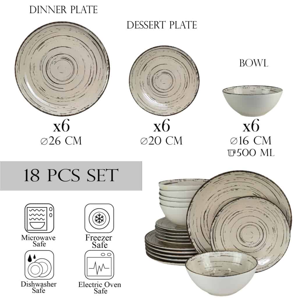 Fiecare set conține 18 piese, perfecte pentru a servi 6 persoane: