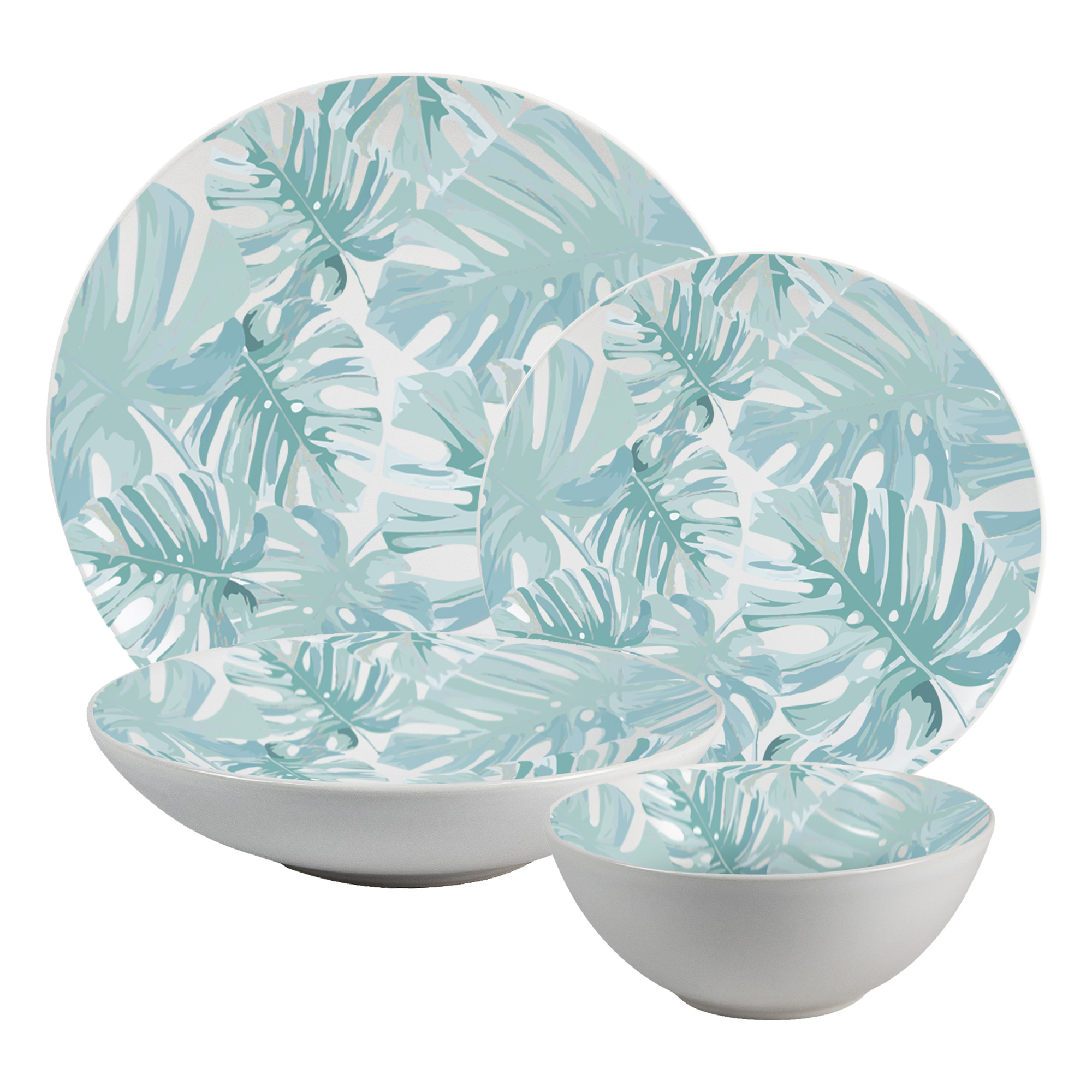 Set farfurii 24 piese, 6 persoane – Insieme Foglie Turquoise – Set Veselă Italiană Porțelan