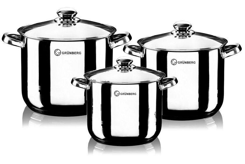 Setul de 3 oale din inox cu capace din sticla Grunberg GR1052 este fabricat din otel inoxidabil, oalele sunt rezistente la temperaturi mari, au manere confortabile si pot fi spalate in masina de spalat vase. Fiecare oala este prevazuta cu un capac din sticla termorezistenta cu orificiu pentru abur. Este un set complet pentru orice bucatarie. Oalele sunt fabricate din otel inoxidabil de inalta calitate, rezistente la uzura indelungata. Alimentele preparate in oalele Grunberg isi vor pastra aportul de vitamine, iar mancarea va fi mult mai gustoasa datorita bazei incapsulate ce mentine temperatura constanta pentru o perioada indelungata de timp. Oalele Grunberg GR1052 sunt insotite de capace realizate din sticla termorezistenta si sunt dotate cu manere confortabile din inox pentru o manevrare mai usoara.