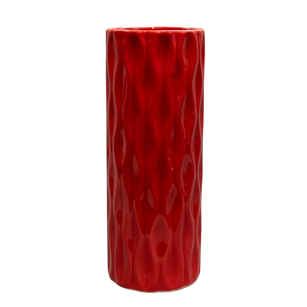 Vază din Ceramică, Roșie, cu Model în Valuri – O Piesă Decorativă Plină de Energie și Eleganță